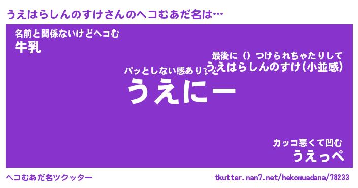 | 意味不明あだ名 | 『ペロリンうえはらしんのすけ』 |