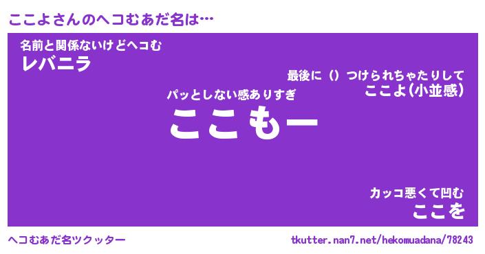 | ファンタジー風あだ名 | 『ココフェル』『エターナルココヨー』 |