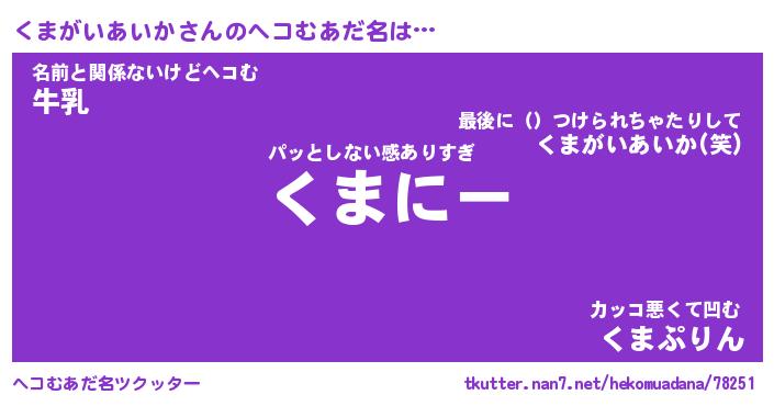 | 2回繰り返すあだ名 | 『くまくま』『くくまま』『うねうね』 |