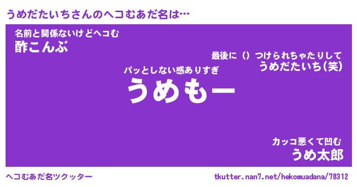 | 意味不明あだ名 | 『ペロリンうめだたいち』 |