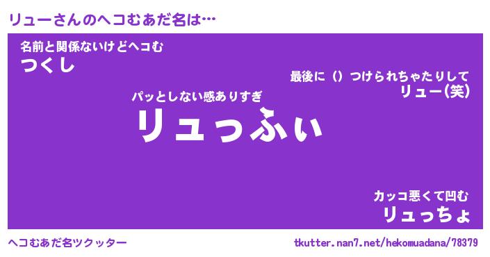 | 意味不明あだ名 | 『ペロリンリュー』『リューフォーエバー』 |