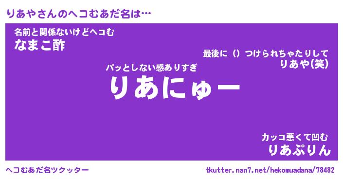 | 意味不明あだ名 | 『ペロリンりあや』『りあやフォーエバー』 |