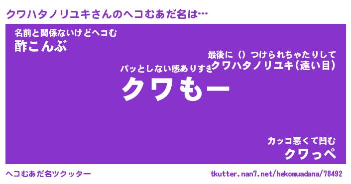 | ヒーロー風カッコイイあだ名 | 『スーパークワハタノリユキ』 |