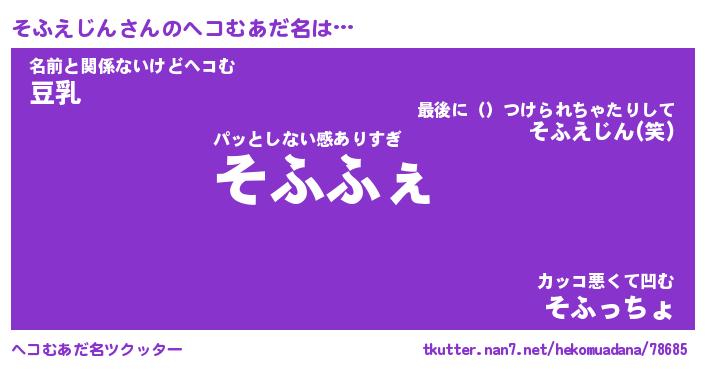 | ファンタジー風あだ名 | 『ソフフェル』『エターナルソフエジンー』 |