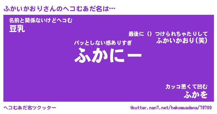 | ヒーロー風カッコイイあだ名 | 『スーパーフカイカオリ』『魔戒騎士フカ』 |
