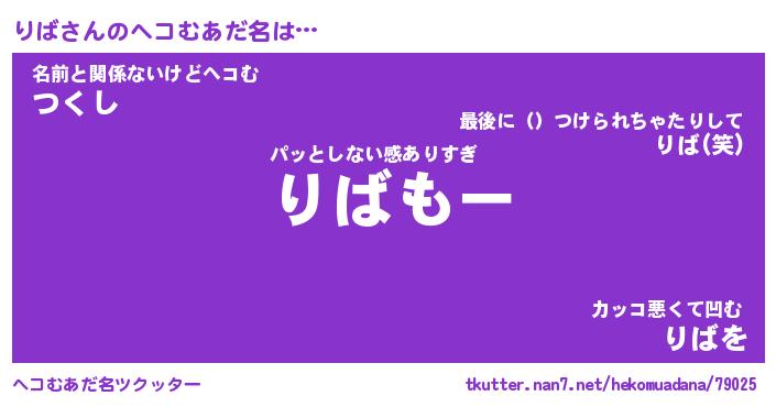 | ポケモン風あだ名 | 『リバチュウ』『リバダネ』『ヒリバ』 |