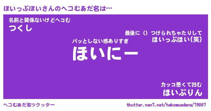 | 男性向けラノベタイトル風あだ名 | 『ほいっぷほいの憂鬱』 |