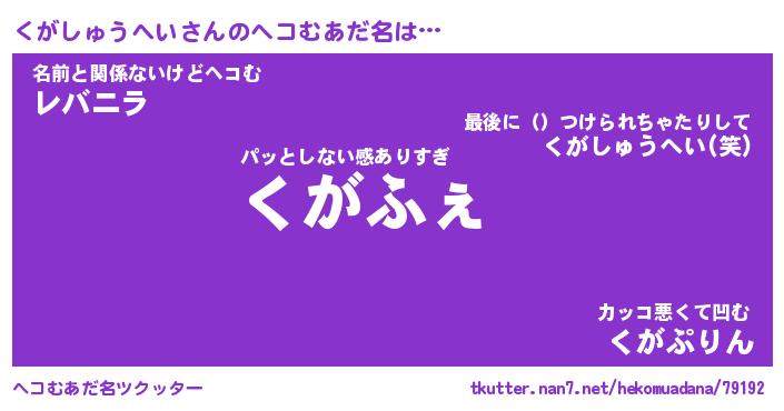 | ポケモン風あだ名 | 『クガチュウ』『クガシダネ』 |