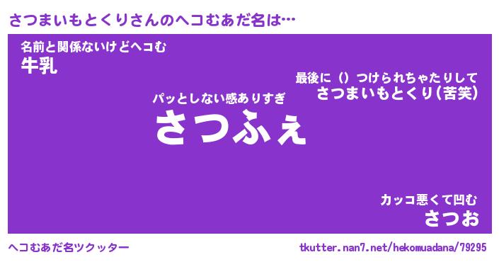 | 2回繰り返すあだ名 | 『さつさつ』『ささつつ』『ぬめぬめ』 |