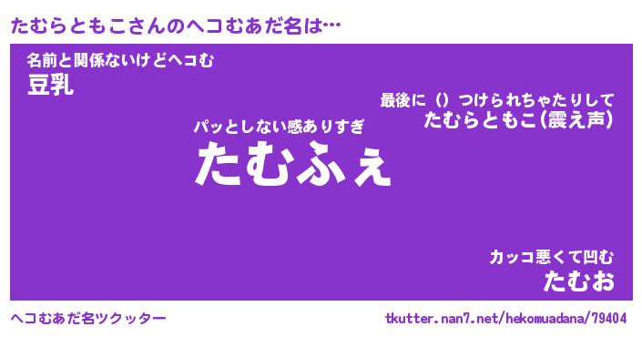 | ヒーロー風カッコイイあだ名 | 『スーパータムラトモコ』『銀牙騎士タム』 |