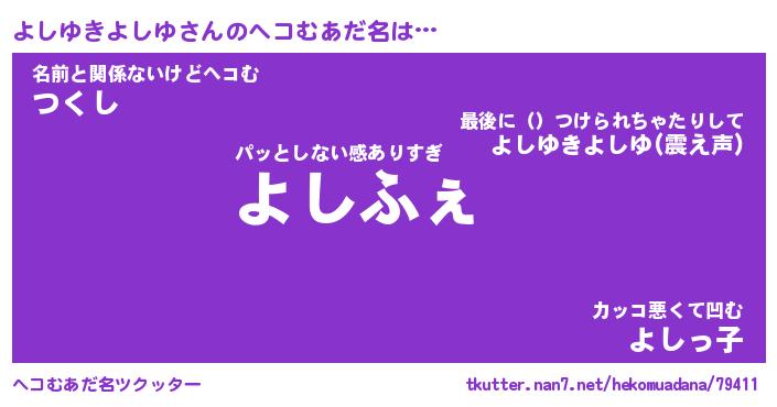 | ポケモン風あだ名 | 『ヨシチュウ』『ヨシユダネ』 |