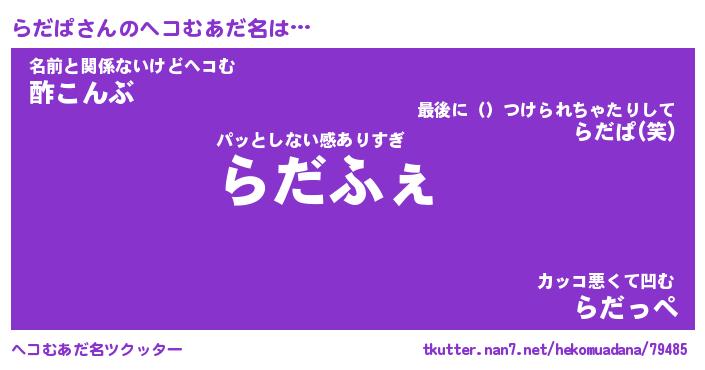 | 意味不明あだ名 | 『ペロリンらだぱ』『らだぱフォーエバー』 |