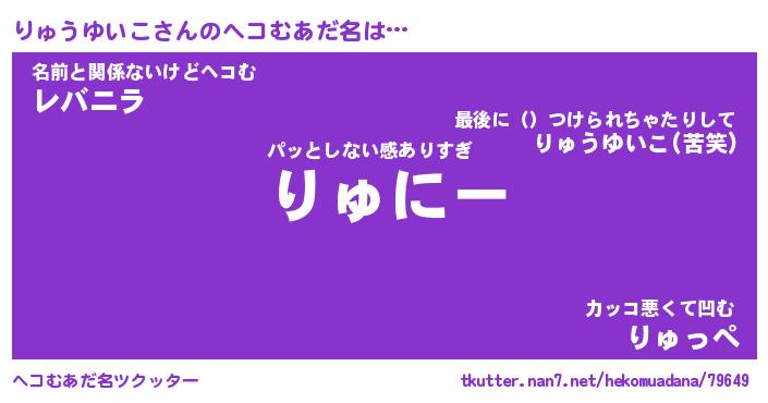 | 2回繰り返すあだ名 | 『りゅりゅ』『りりゅゅ』『うねうね』 |