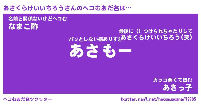 | 胡散臭い通販商品みたいなあだ名 | 『必ず成功する霊験あらたかなお札…その名も「あさくらけいいちろう」』 |