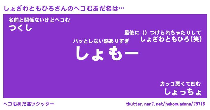 | 胡散臭い通販商品みたいなあだ名 | 『必ず成功する霊験あらたかなお札…その名も「しょざわともひろ」』 |