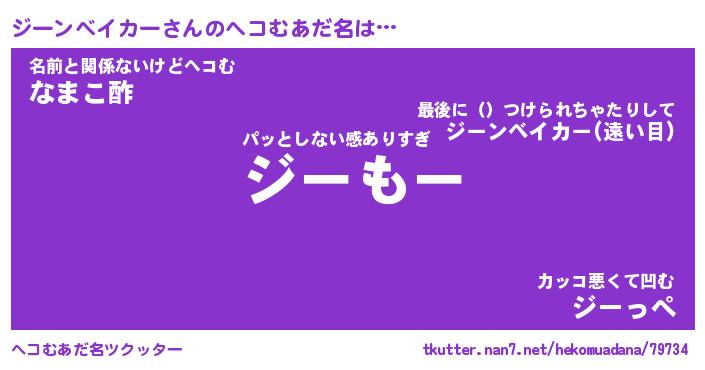 | 男性向けラノベタイトル風あだ名 | 『ジーンベイカーの憂鬱』 |