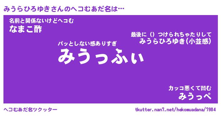 | 恥ずかしいあだ名 | 『プリティーみうらひろゆき』『みうちん』 |