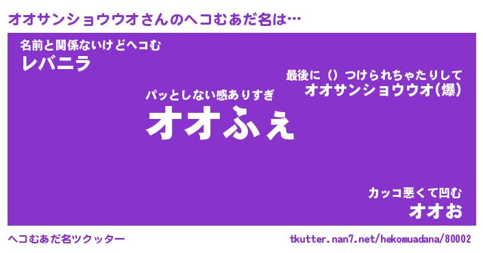 | 2回繰り返すあだ名 | 『オオオオ』『オオオオ』『ぬれぬれ』 |