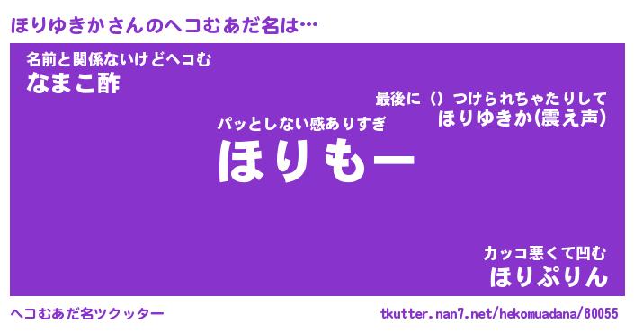 | 恥ずかしいあだ名 | 『プリティーほりゆきか』『ほりっちょ』 |