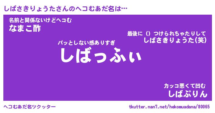 | ヒーロー風カッコイイあだ名 | 『スーパーシバサキリョウタ』 |