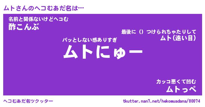| ポケモン風あだ名 | 『ムトチュウ』『ムトダネ』『ヒムト』 |