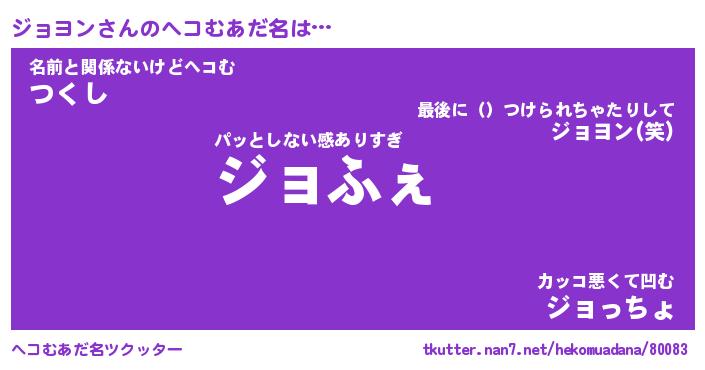 | ファンタジー風あだ名 | 『ジョフェル』『エターナルジョヨンー』 |