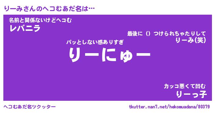| 男性向けラノベタイトル風あだ名 | 『りーみの憂鬱』 |