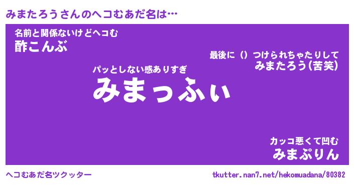| 胡散臭い通販商品みたいなあだ名 | 『億万長者になれる霊験あらたかなお札…その名も「みまたろう」』 |