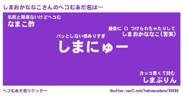 | 胡散臭い通販商品みたいなあだ名 | 『必ず成功する水晶球…その名も「しまおかななこ」』 |