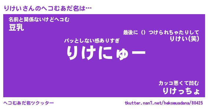 | 2回繰り返すあだ名 | 『りけりけ』『りりけけ』『にたにた』 |