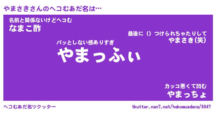 | ファンタジー風あだ名 | 『ヤマフェル』『エターナルヤマサキー』 |