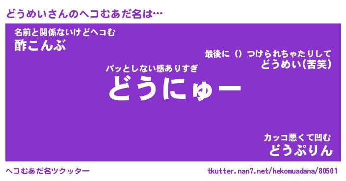 | ポケモン風あだ名 | 『ドウチュウ』『ドウメダネ』 |