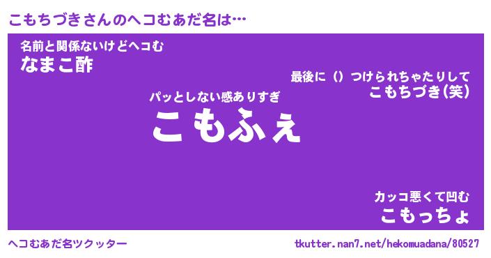 | ファンタジー風あだ名 | 『コモフェル』『エターナルコモチヅキー』 |