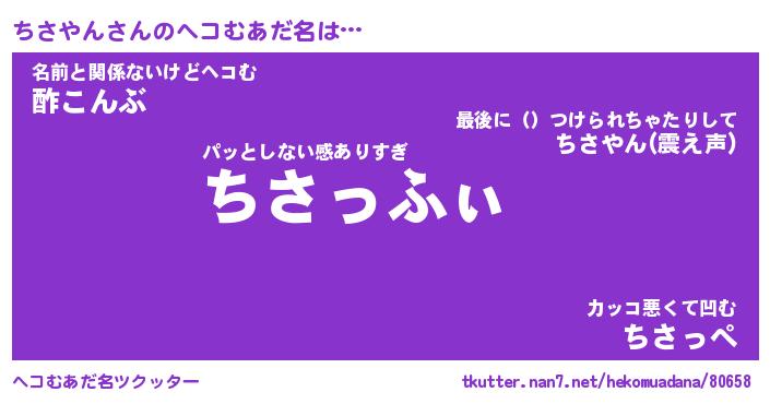 | 胡散臭い通販商品みたいなあだ名 | 『必ず成功する霊験あらたかなお札…その名も「ちさやん」』 |