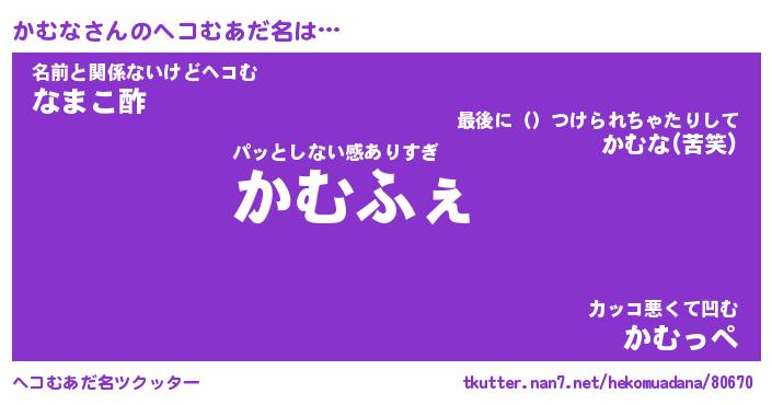 | ヒーロー風カッコイイあだ名 | 『スーパーカムナ』『ウルトラかむなマン』 |