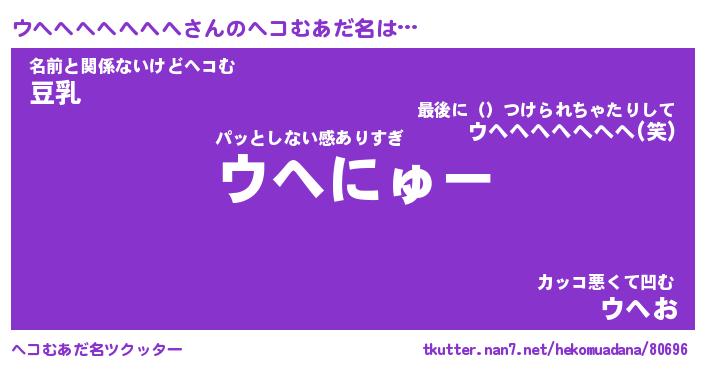 | ポケモン風あだ名 | 『ウヘチュウ』『ウヘヘダネ』 |
