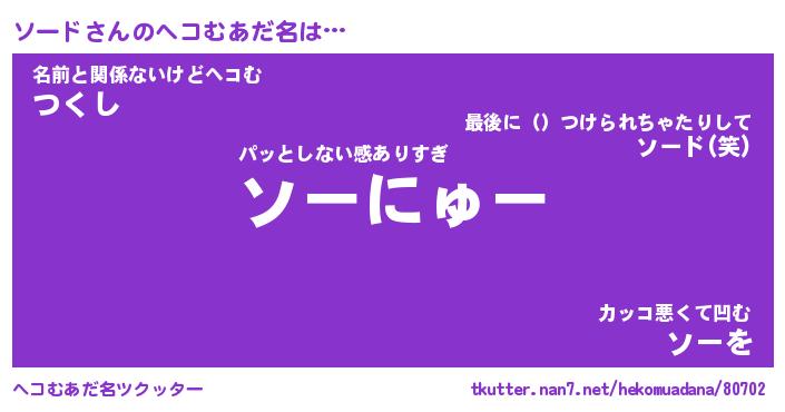 | 男性向けラノベタイトル風あだ名 | 『ソードの憂鬱』 |