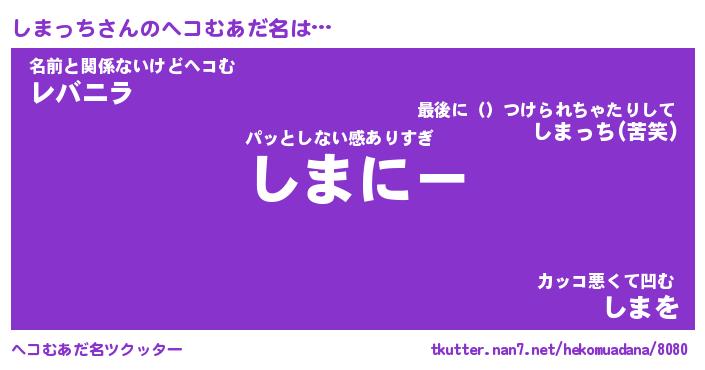 | ファンタジー風あだ名 | 『シマフェル』『エターナルシマッチー』 |