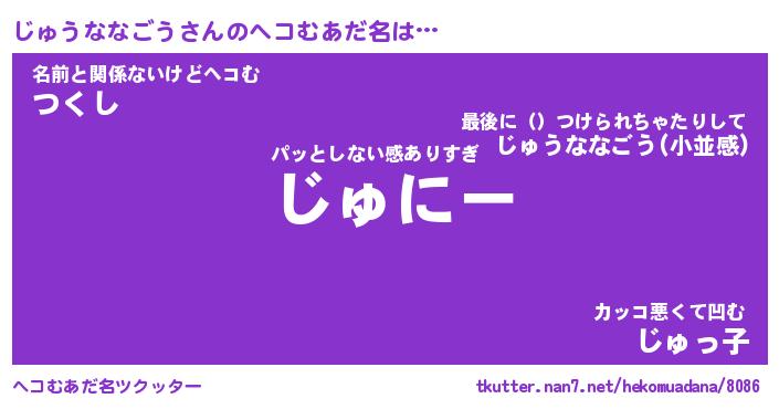 恥ずかしいあだ名 | 『プリティーじゅうななごう』『じゅちん』 |