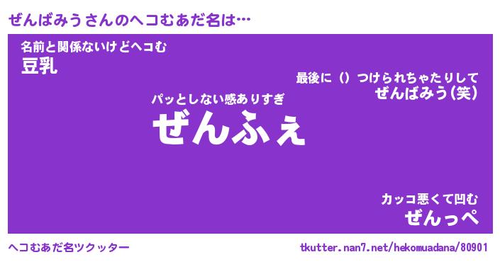 | ポケモン風あだ名 | 『ゼンチュウ』『ゼンバダネ』 |