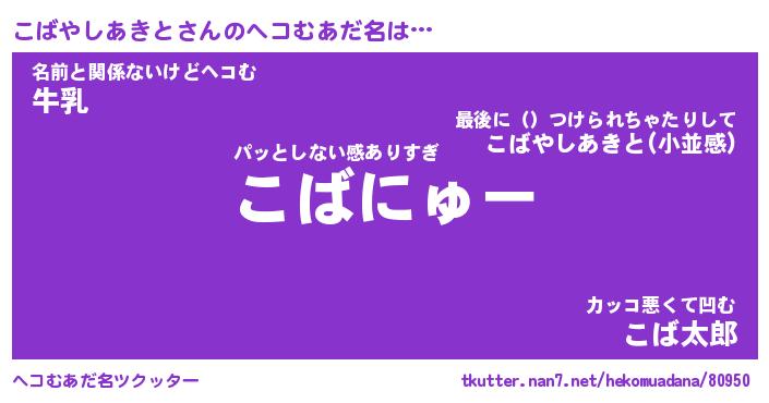 | ポケモン風あだ名 | 『コバチュウ』『コバヤダネ』 |