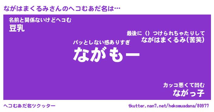 | ヒーロー風カッコイイあだ名 | 『スーパーナガハマクルミ』 |