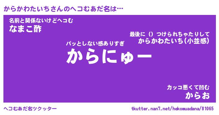 | ヒーロー風カッコイイあだ名 | 『スーパーカラカワタイチ』 |
