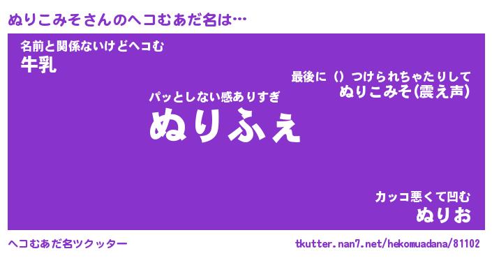 | ファンタジー風あだ名 | 『ヌリフェル』『エターナルヌリコミソー』 |