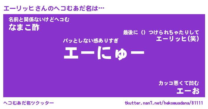 | ヒーロー風カッコイイあだ名 | 『スーパーエーリッヒ』『幻影騎士エー』 |