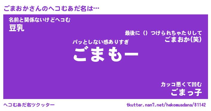 | 2回繰り返すあだ名 | 『ごまごま』『ごごまま』『なあなあ』 |