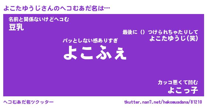 | 男性向けラノベタイトル風あだ名 | 『よこたゆうじの憂鬱』 |