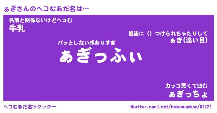 | 2回繰り返すあだ名 | 『ぁぎぁぎ』『ぁぁぎぎ』『おたおた』 |