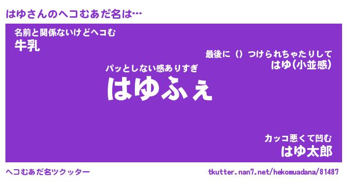 | 意味不明あだ名 | 『ペロリンはゆ』『はゆフォーエバー』 |