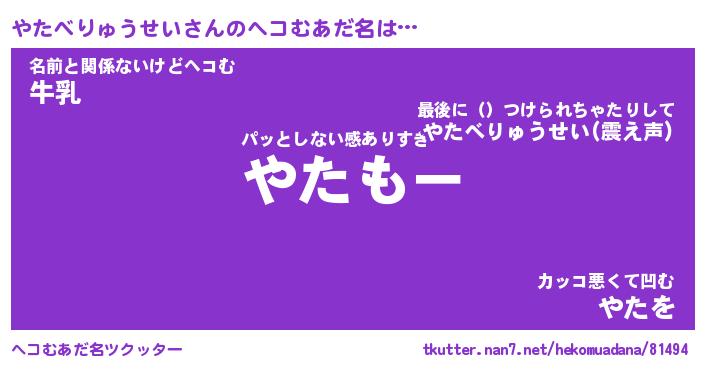 | ポケモン風あだ名 | 『ヤタチュウ』『ヤタベダネ』 |